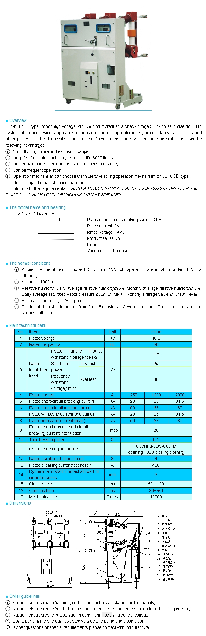 ZN23-40.5 indoor high voltage vacuum circuit breaker
