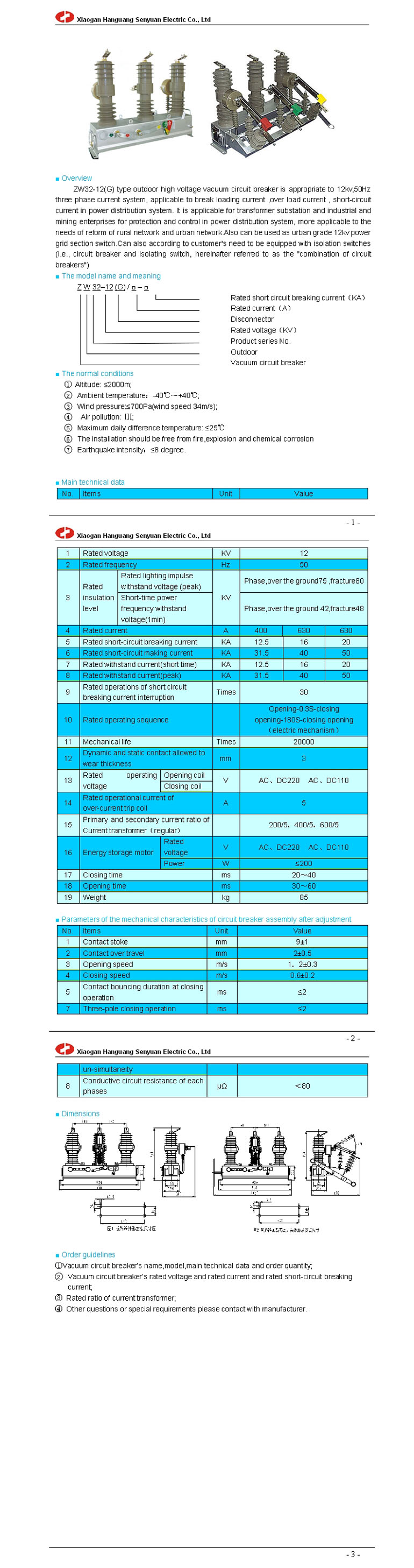 ZW32-12(G) outdoor high voltage vacuum circuit breaker