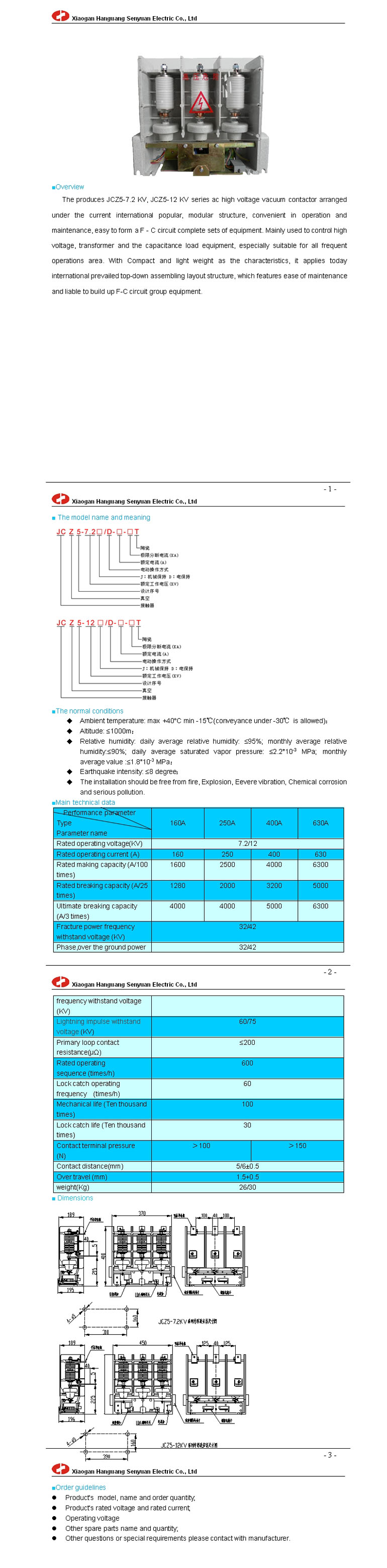 | JCZ5-7.2(12) ac high voltage vacuum contactor | |