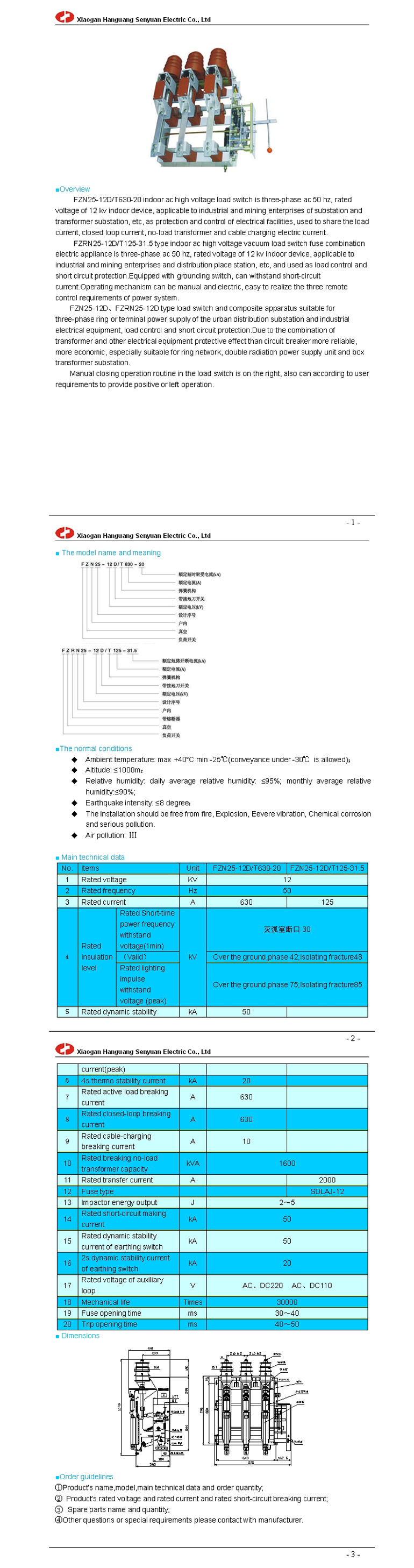 FZ(R)N25-12D ac high voltage vacuum load switch