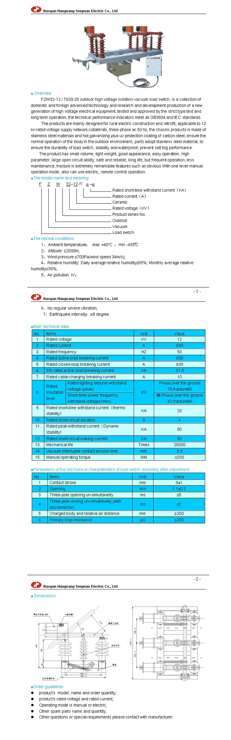 | FZW32-12 outdoor ac high voltage vacuum load switch | |